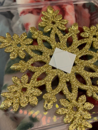 GLITTER SNOWFLAKE- We had a bunch of these that were ornaments but most of them have broken! They were shitty quality- I remember my sister saying she did not order them, they were just thrown into the pile when we first moved here so I've been rescuing them and using them for crafts. NOW if you do not have one of these around, you can make one out of pipe cleaner in the size you require or glitter foam, anything you can cut into a snowflake and glitterize...whatever you want for your snowflake base, get it, queen.